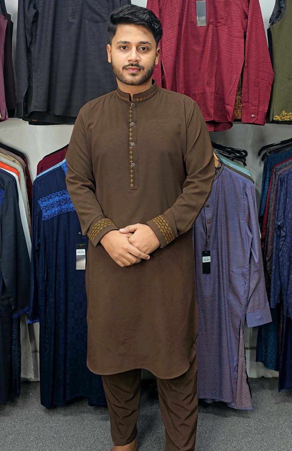 কফি কালার কাবলি পাঞ্জাবি ও পায়জামার সেট। এ কালার শুধু ৩৮ (M) সাইজ স্টকে আছে, অন্য সাইজগুলো শেষ। অন্য সাইজগুলো শুধু সাদা কালার আছে।